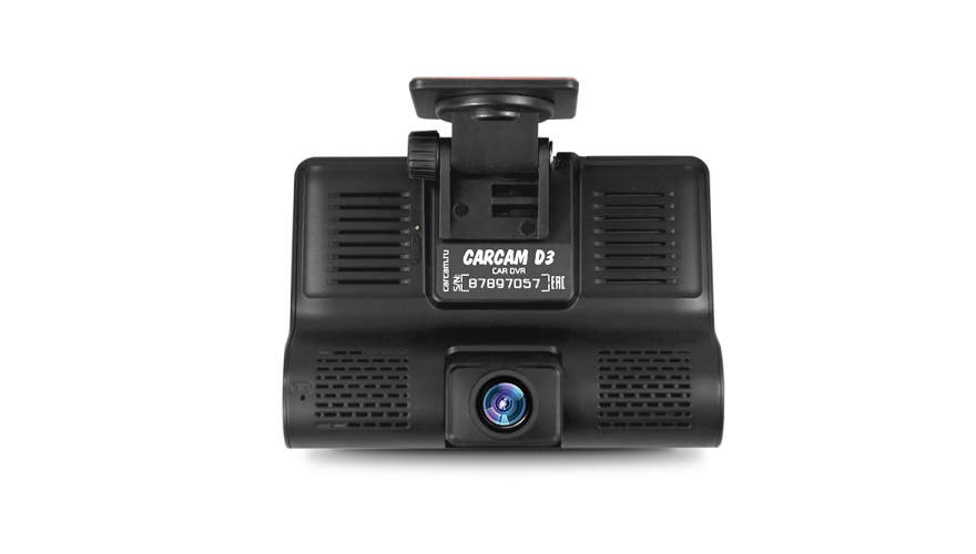 КАРКАМ D3 — автомобильный видеорегистратор, оснащенный сразу тремя камерами, которые позволяют фиксировать обстановку перед автомобилем, позади него и в его салоне. Основная камера, оснащенная стеклянным объективом с углом обзора 140°, ведет запись обстановки перед автомобилем в формате HD 1280×720p. Фронтальная камера с углом обзора в 120° расположена на задней части видеорегистратора и ведет съемку в салоне автомобиля. В комплект входит дополнительная, миниатюрная камера заднего вида с углом обзора 120°, которая может применяться как для фиксации обстановки позади автомобиля, так и для безопасной парковки. IPS дисплей с диагональю 4'', обеспечивает удобную навигацию в меню устройства, а также комфортный просмотр изображения сразу с нескольких камер одновременно.
