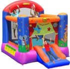 Материалы: прыжковая поверхность: ПВХ ламинированный (laminated PVC) подъем: ПВХ ламинированный (laminated PVC) скользящая поверхность горки: ПВХ ламинированный, ламинированная ткань Оксфорд прочее: ламинированная ткань Оксфорд застежки: лавсан крепеж к земле: пластмасса Основные характеристики: возраст детей - от 3 до 10 лет рост детей от 90 см до 150 см допустимая нагрузка: 135 кг допустимое количество детей - 3 максимальный вес одного ребенка не более 45 кг прочность батута на растяжение до 136 кг прочность на разрыв до 14 кг прочность на соединение - до 27 кг батут выдерживает широкий диапазон температур: от - 10 до + 40 C насос батута высокого качества, высокоэффективен, безопасен при использовании и безвреден для окружающей среды насос можно использовать при температуре от -15 до + 40 C. Помимо этого, он оснащен устройством защиты. При возникновении в насосе короткого замыкания или при прочих возникших проблемах при его эксплуатации, он немедленно выключается, тем самым обеспечивает безопасность пользователю надувного батута. Насос отвечает экологическим стандартам ЕС, а также имеет сертификат безопасности GS легко установить и демонтировать прыжковая зона обтянута сеткой широкая горка с защитными бортиками Приятные особенности детского надувного батута Happy Hop: надувной батут Happy Hop 9304T Представление с баскетбольным кольцом и горкой выполнен в виде разноцветного театра, в котором можно при желании разыгрывать веселые сценки, проявляя свое актерское мастерство. Как известно, все дети очень артистичны и воображают себя персонажами каких-то сказочных историй или мультфильмов, потому такой батут принесет максимум позитивных эмоций вашим подрастающим актерам и позволит им воплотиться в любимых героев. Внутри игрового батута Представление много свободного пространства, которого будет достаточно для игры одновременно трех человек. На задней стенке имеется баскетбольное кольцо, так что малыши смогут поупражняться