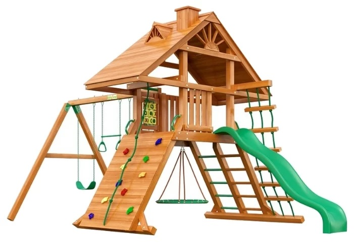 Наш магазин предлагает заботливым родителям обратить внимание на интереснейшую детскую площадку «Крепость Фани» (Дерево). Большой, двухуровневый домик оборудован полезными спортивными снарядами: скалолазной стеной, верёвочной лестницей, трапецией с кольцами, качелями «Овал», развивающие выносливость, дыхание, координацию, укрепляющие мышцы. Дети любят кататься с горки, качаться на качелях. Поэтому данные элементы тоже входят в комплект.