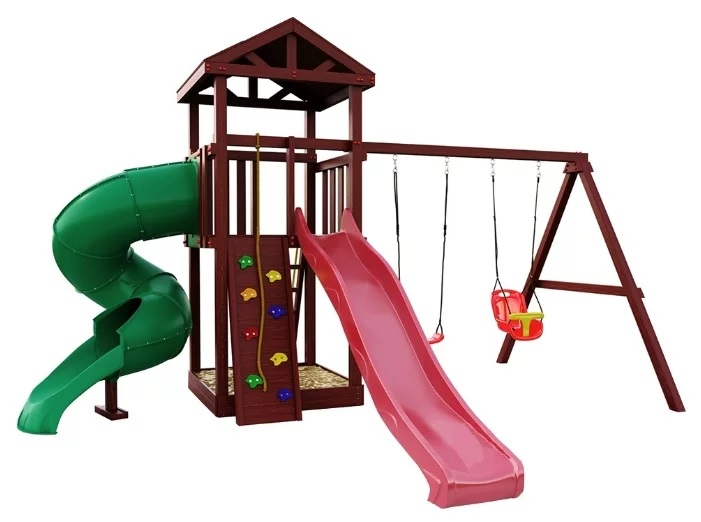 - - песочница - расположена на первом уровне игрового комплекса и защищена деревянной крышей, поэтому игры не страшны малышу даже при палящем солнце. Опционально песочница может быть укомплектована специальной крышкой;