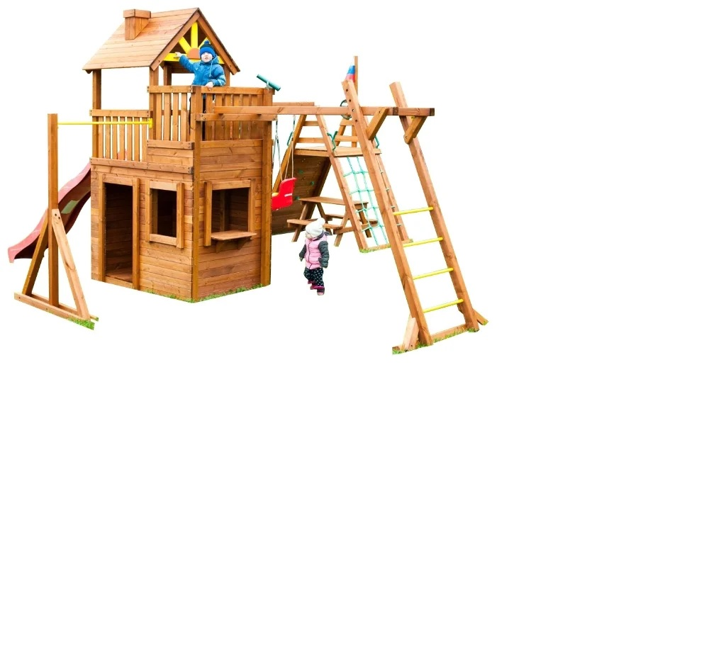 Крепость Застава — идеальный выбор для нескольких детей! Здесь места хватит всем. Девочки выбирают качели, горку, домик, а мальчики обожают свой военный штаб, где они могут разрабатывать операции и планы.