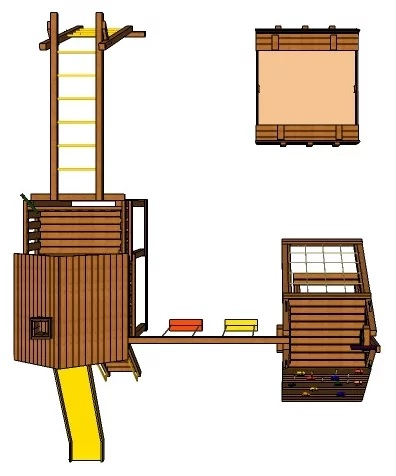 Продуманная вариативность установки рукохода с разных сторон игровой башни, позволяет установить площадку на сложные дачные участки.