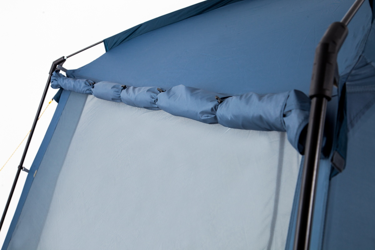 - По периметру боковой шторки есть липучки, фиксирующие её по всей стороне шатра, от порывов ветра,