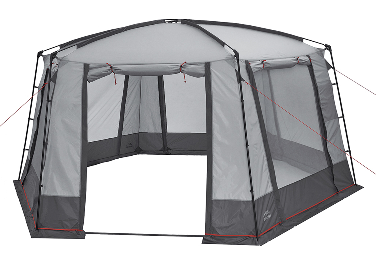 Большой и просторный шатер шестиугольной формы Trek Planet Siesta Tent прекрасно подойдет для продолжительного кемпинга. Внушительная площадь 14 квадратных метров и высота 225 см создают огромное внутреннее пространство, в котором комфортно поместится большая компания со столами и стульями. При этом благодаря простой конструкции шатер собирается двумя людьми за 10 минут. Шестиугольная форма и ветровые оттяжки обеспечивают максимальную устойчивость к ветру. Все стороны оснащены москитными сетками для эффективного проветривания. Каждую из них можно закрыть для надежной защиты от дождя. На двух дверях расположены большие обзорные окно со шторкой. Для удобного использования внутри предусмотрены карманы из сетки, в которые можно положить продукты, одежду, настольные игры и другие нужные вещи.