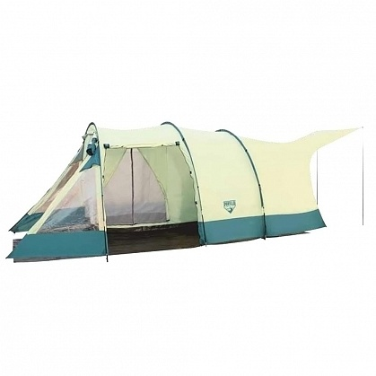Палатка имеет прочный каркас , достаточно устойчива даже в непогоду. Материал тента влагозащищенный полиэстер, пол внутри палатки выполнен из полиэтилена. Швы палатки проклеены для обеспечения герметичности. Эта модель палатки является самым настоящим трансформером, потому что ее можно интерпретировать по-разному. Имеется 2 вместительных тамбура, которые можно открыть, установить на фибергласовые трубки и получится тент от солнца. Вместимость, чел : 4 Размеры см : (220+135+35)х280х200см Водостойкость, мм вод. столба: 3000 Количество входов: 2 входа Материал тента : полиэстер Материал спальни : полиэстер Вес, кг : 11,5 кг