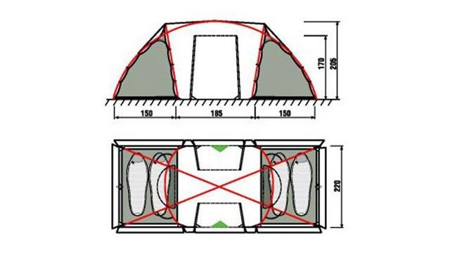 Двускатная и шатровая геометрия еще используются, но только в производстве очень простых моделей или больших палаток (для экспедиционных групп). В такой палатке можно собираться большой компанией.