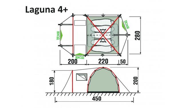 RockLand Laguna 4+ комфортабельная палатка для семейного отдыха. Это не просто четырехместная палатка, это двухкомнатная палатка! В ней сможет отдыхать сразу две семьи. А можно в одной комнате устроить детскую. Возможно снять разделительную и использовать одну большую комнату. В тамбуре можно разместить стол. Палатка имеет довольно небольшой вес и габариты в упакованном виде, идеальный вариант для автотуризма.