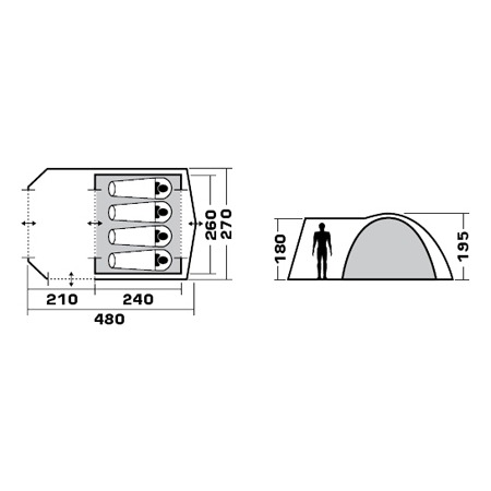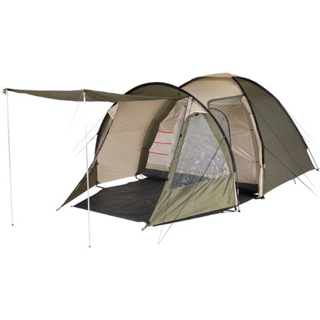 Назначение: кемпинговая • Количество мест: 4 • Форма: полубочка • Материал тента: полиэстер • Вес: 8.9 кг • Каркас: внешний • Количество входов: 3 • Внутренняя палатка: есть • Навес: есть • Вентиляционные окна: есть • Окна: 2 окна • Материал внутренней палатки: полиэстер • Материал дна: полиэтилен • Материал дуг: стеклопластик • Водостойкость тента: 3000 мм вод. ст. • Водостойкость дна: 10000 мм вод. ст.
