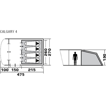 Четырехместная двухкомнатная (2+2) кемпинговая двухслойная палатка Calgary 4 имеет форму П-образной полубочки с увеличенным внутренним объемом. В огромном светлом тамбуре с большими обзорными/вентиляционными окнами и встроенным полом легко разместится столовая. Просторное высокое хорошо проветриваемое внутреннее помещение разделено съемной стенкой на две спальные комнаты. Отлично подойдет для продолжительного кемпинга.