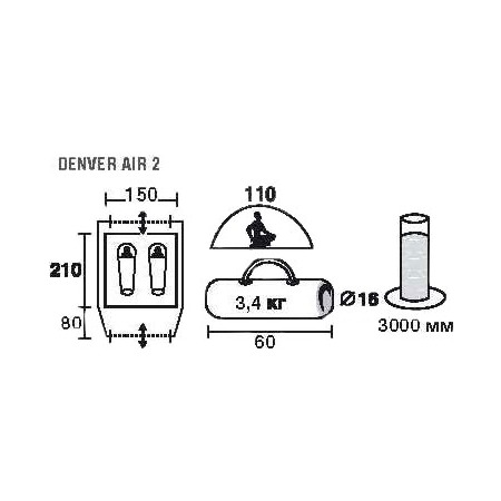 Двухместная двухслойная палатка Denver Air 2 предназначена для длительных путешествий, продолжительного кемпинга и отдыха на природе. Усиленные дюраполовые дуги выдержат даже сильную непогоду. Высокая водостойкость и усиленный пол из полиэстера Oxford 150D надежно защитят вас даже сложном горном походе. Во вместительном тамбуре с дополнительным входом вы сможете разместить все необходимые вещи.