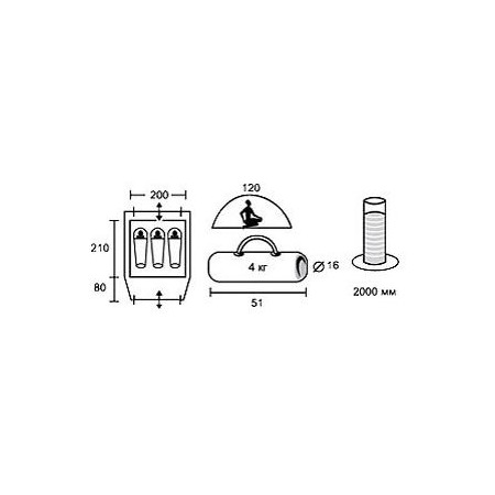 Назначение: трекинговая • Количество мест: 3 • Форма: полусфера • Материал тента: полиэстер • Вес: 4 кг • Каркас: внутренний • Количество входов: 2 • Количество комнат: 1 • Внутренняя палатка: есть • Навес: нет • Вентиляционные окна: есть • Окна: нет • Материал внутренней палатки: полиэстер • Материал дна: полиэтилен • Материал дуг: стеклопластик • Герметизация швов: проклеенные • Ветро- сенгозащита: нет