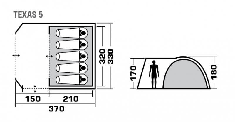Пятиместная двухслойная кемпинговая высокая палатка TREK PLANET TEXAS 5 с хорошей вентиляцией и большим и светлым тамбуром, хорошо подойдет для кемпинга выходного дня или отдыха на природе большой друхной компании! Самая доступная среди больших кемпинговых палаток!