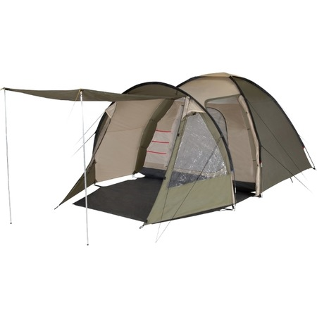 Назначение: кемпинговая • Количество мест: 4 • Форма: полусфера • Материал тента: полиэстер • Вес: 7.3 кг • Каркас: внешний • Количество входов: 2 • Внутренняя палатка: есть • Навес: есть • Вентиляционные окна: есть • Окна: есть • Материал дна: полиэтилен • Материал дуг: стеклопластик • Ветро- сенгозащита: нет • Противомоскитная сетка: есть • Штормовые оттяжки: есть • Внутренние карманы: есть