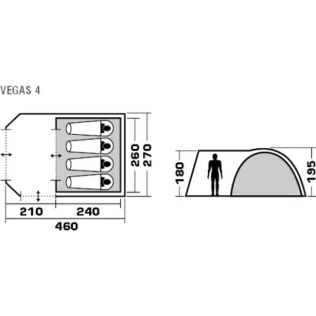 Четырехместная двухслойная кемпинговая палатка Vegas 4 имеет вместительный светлый тамбур с двумя входами, обзорными окнами и съемным полом. Дверь тамбура можно использовать как дополнительный тент на стальных стойках. В спальном отделении можно стоять в полный рост, оно отлично проветривается благодаря 3-х позиционному вентиляционному окну. Палатка отлично подойдет для отдыха на природе и продолжительного кемпинга.