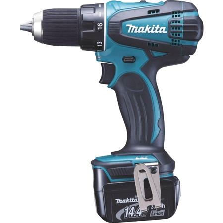 Аккумуляторная дрель-шуруповёрт Makita BDF446RFE используется для сверления отверстий разного диаметра. Сверху рукоятки имеется фонарь, что позволяет работать в темное время. Эргономичная прорезиненная ручка удобно и надежно лежит в руке. Воздушное охлаждение отлично защищает мотор от перегрева. Инструмент имеет 16 ступеней крутящего момента и 1 режим дрели, что позволяет производить тонкую настройку перед началом работы.