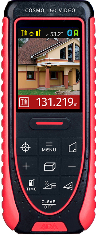 Лазерный дальномер ADA Cosmo 150 Video — профессиональный прибор, который сочетает в себе цифровой визир и 360° датчика наклона. Он помогает измерять большие дистанции — до 150 метров. С помощью данного устройства можно рассчитать площадь всех стен помещения, а также разметить одинаковые отрезки. Модель работает от 2 батареек типа АА и напряжением 1.5 В. Их хватает на 2000 измерений.