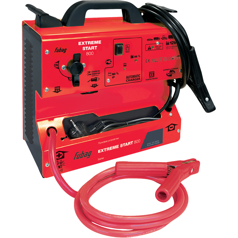 Пусковое устройство FUBAG EXTREME START 800 28050 используется для запуска двигателя в случае разряда аккумуляторной батареи или при затрудненном пуске техники в холодное время года. Аппарат развивает до 830 ампер при пуске, чего вполне хватает для запуска мощных двигателей автомобилей или электростанций с рабочей электрической цепью на 12 Вольт. Малые габариты и вес устройства позволяют легко транспортировать его и делают удобным в хранении.