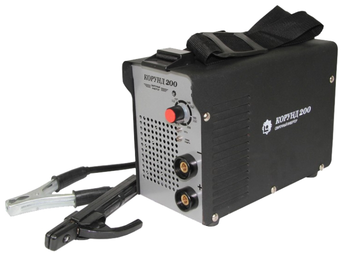 Оборудование способно эффективно функционировать в слаботочных электросетях. На выходе возможно ручное управление показателями напряжения. Инверторный сварочный аппарат модели «Корунд 200» может с одинаковым успехом применяться для сварки стали, чугуна или алюминия.