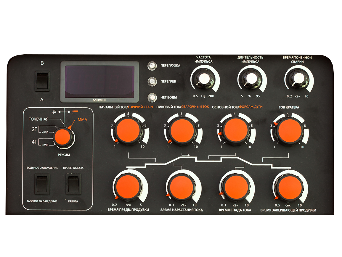 Аппарат серии STANDART TIG 500 P (W302) — промышленный сварочный инвертор для аргонодуговой сварки (TIG) с режимом импульсной сварки, ручной дуговой сварки покрытым электродом (ММА), оборудован цифровыми индикаторами параметров сварки и большим набором ручных регулировок.
