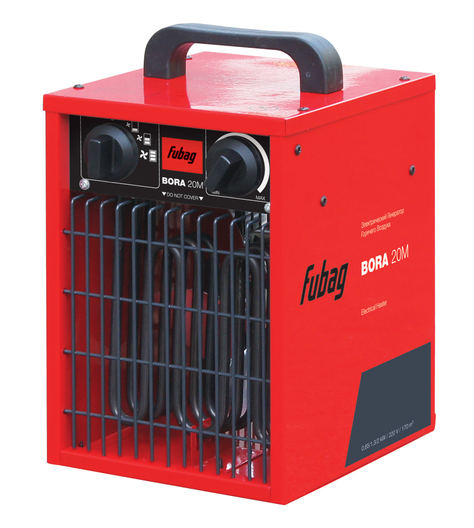 Тепловая пушка электрическая Fubag BORA 20 M – небольшое устройство, используемое в качестве генератора тепла для быстрого обогрева маленьких помещений. Он рассчитан на работу в комнате до 25 м². Благодаря незначительным габаритам в 23x30x20 см обогреватель не займет много места. Устройство весит всего 4.2 кг, а благодаря удобной теплоизолированной ручке его без усилий можно передвигать. Данная пушка располагается на полу, но не повредит его покрытие, т.к. нижняя часть корпуса выполнена из специальных материалов и не нагревается. Благодаря наличию металлического ТЭНа это устройство способно осуществлять оптимальный нагрев помещения с низкими энергозатратами. Нагревательный элемент создает быстрый теплообмен 184 м³ воздуха в час. Установленная мощность пушки 2 кВт говорит о том, что она особенно эффективна для обогрева жилой комнаты. Электрическая пушка Fubag BORA 20 M – эффективное изделие для обогрева помещений, предлагаемое известным производителем за адекватную цену.