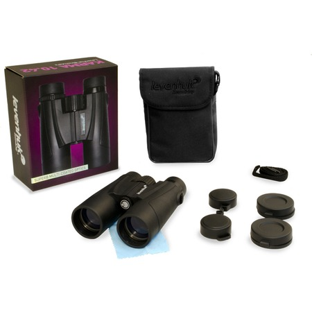 Кратность увеличения: 10x • Диаметр объектива: 42 мм • Диаметр выходного зрачка: 4 мм • Относительная яркость: 16 • Фактор сумерек: 20.5 • Поле зрения (1000 м): 101 м • Реальный угол зрения: 5.8° • Минимальная дистанция фокусировки: 4.5 м • Тип бинокля: призменный бинокль (ROOF) • Межзрачковое расстояние: 56 - 72 мм • Вынесенная окулярная точка: есть, 13.6 мм • Выдвижные окулярные кольца: естьХарактеристики бинокля Levenhuk Karma 10x42