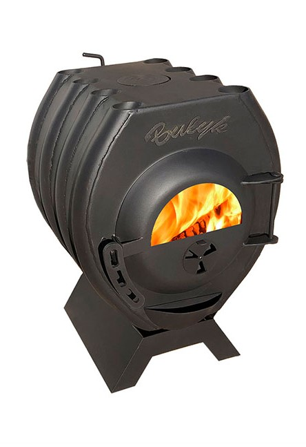 Печь ”Bulyk 150 ” предназначена для отопления помещения до 150 кубических метров. За счет конвекционных труб печи, быстро нагревается помещение, а длительность горения в режиме тления достигает до 12 часов на одной закладке дров. В конструкции печи имеется три регулировки режима горения: на дверце, на дымоходном патрубке и с помощью зольного ящика. Для эффективной работы печи, снизу есть регулируемый канал, который подает воздух в топку через рассекатель расположенный в верхней части. Несгоревший, газ выделяемый топливом догорает и позволяет извлечь максимум тепла. Печь имеет варочную поверхность, на которой можно приготовить или разогреть пищу. Печь окрашена термостойкой краской, а ее дизайн прекрасно впишется в любой интерьер.