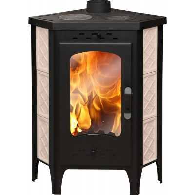 Печь ЭкоКамин Бавария Изразец бежевый,угловая с чугунной плитой