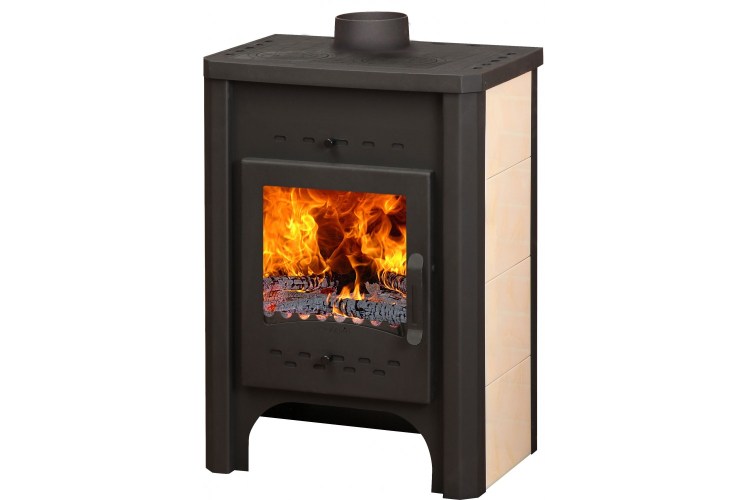 Эта печь имеет теплообменник мощностью 4 кВт для подключения к системе отопления, чугунный колосник, режим экономичного расхода топлива, систему очистки стекла, керамические вставки «под мрамор» на боковых панелях.Простая установка (требуется только подключение к дымоходу) и эффективная теплоотдача (КПД до 78%).