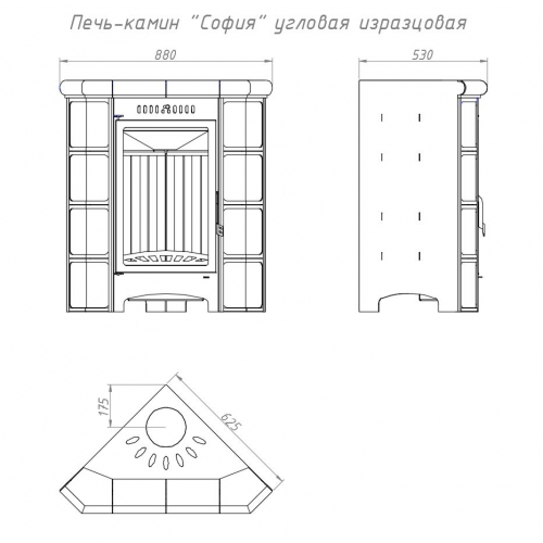 Характеристики печи ЭкоКамин София Изразец, песочная Арка, угловая