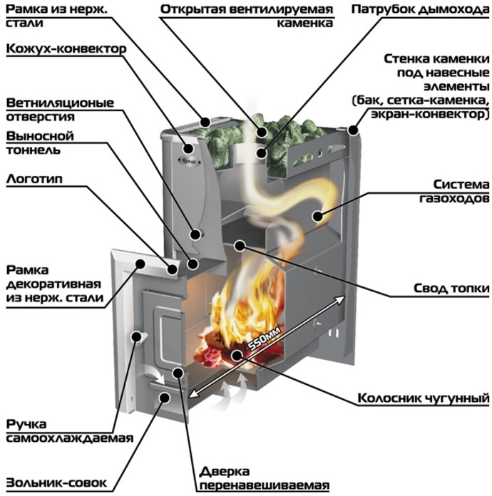 - Тип — банная печь
