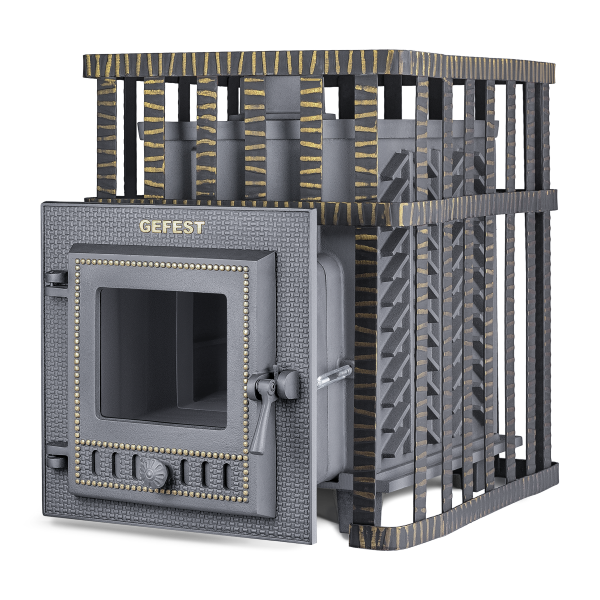 Банные печи Гефест – это продукция, сочетающая в себе высокие технологии, лучшие материалы и преемственность традиций. Печи полностью изготовлены из чугуна -лучшего материала для банных печей, отличающегося жаропрочностью, стойкостью к коррозии, химической стойкостью к кислотам выделяемым при горении дров и высокой теплоемкостью. Прочность и надежность печей Гефест обусловлена особой конструкцией, не имеющей болтовых соединений или сварных швов, а также толщиной чугунных деталей от 10 до 25 мм. В процессе эксплуатации при высоких температурах наши печи выдерживают вертикальные нагрузки в несколько тонн! Панорамные дверцы печей снабжены системой «чистое стекло», украшены художественным литьём и создают в помещении «эффект камина». Жаростойкое стекло Robax и уплотнение керамическим шнуром обеспечивают безопасную эксплуатацию печи в смежном помещении. Печь оборудована составным пламегасителем с возможностью демонтажа для чистки труб и удлинителем топочного тоннеля для прохода через стены любой толщины.