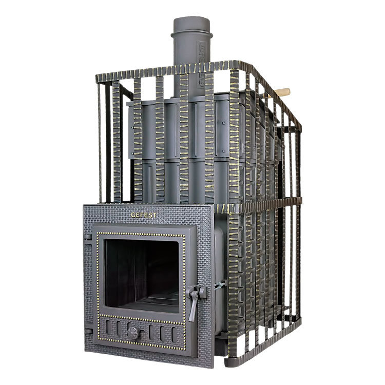 Чугунные банные печи Гефест — это 2-камерные топочные агрегаты, оборудованные системой дожига пиролизных газов, которая быстро нагревает каменку с зарядом или переводит печь в режим длительного горения.