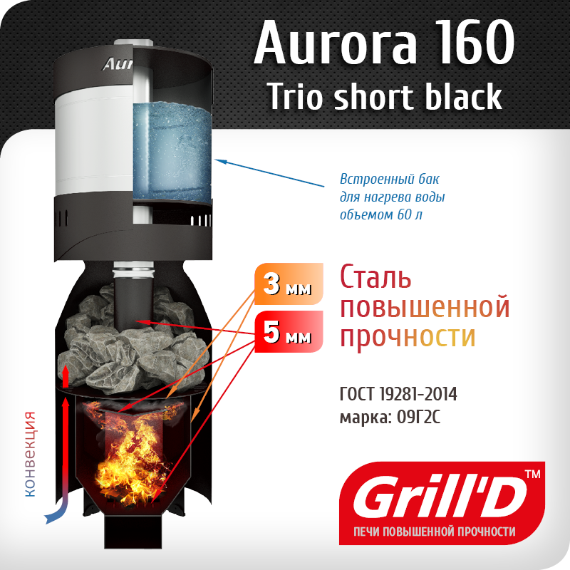 Характеристики печи Grill'D Aurora 160 Trio short black