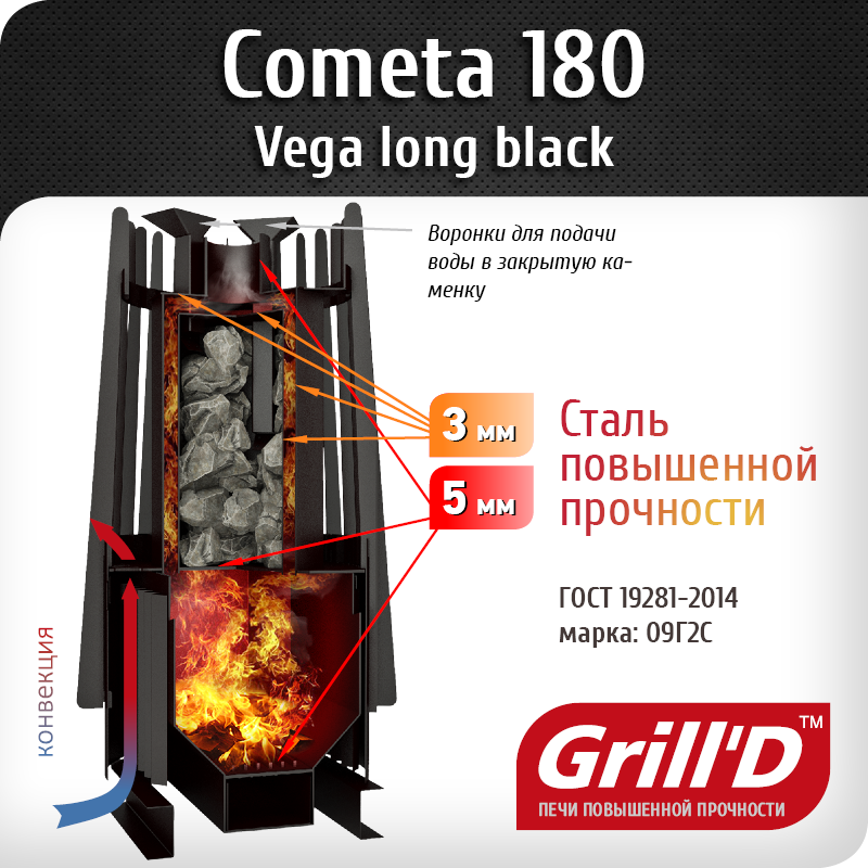 Описание печи Grill'D Cometa Vega 180 window black