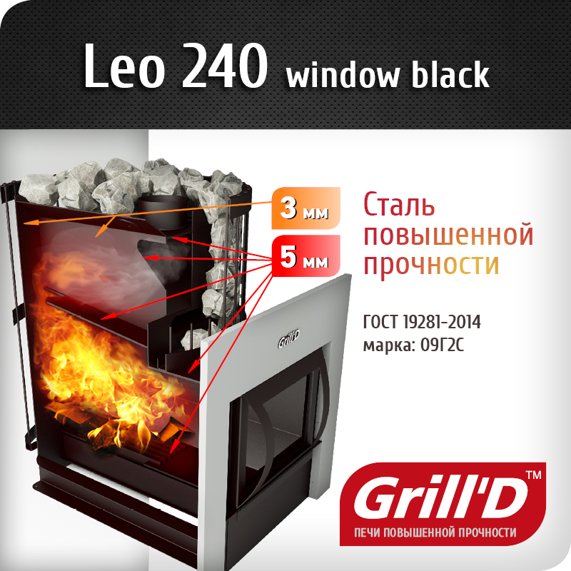 Характеристики печи Grill'D Leo 240 window black