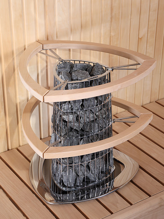 Harvia Kivi можно устанавливать рядом с полками, поскольку температура поверхности каменки остается сравнительно низкой. Можно также встроить печь в нижний полок с использованием монтажного фланца из нержавеющей стали. Также можно установить защитное ограждение, изготовленное из ольхи.
