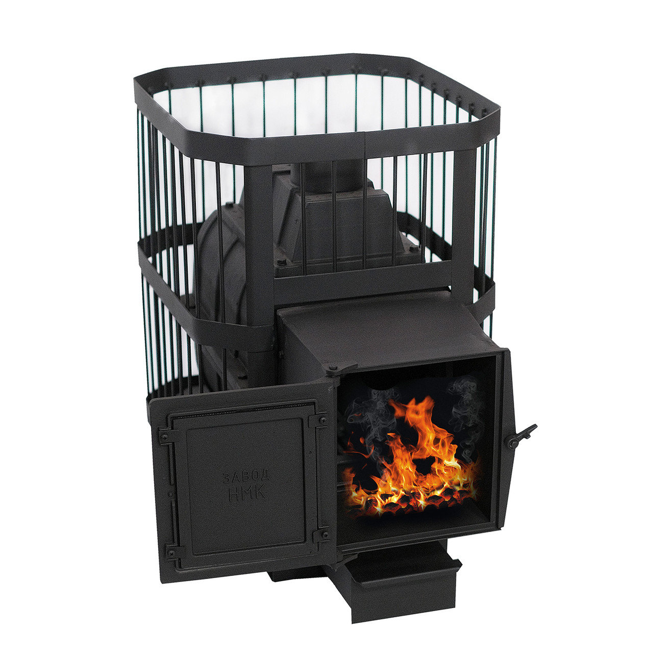 Описание печи НМК Сибирь-24 чугунная дверка универсальная, под стекло (сетка)