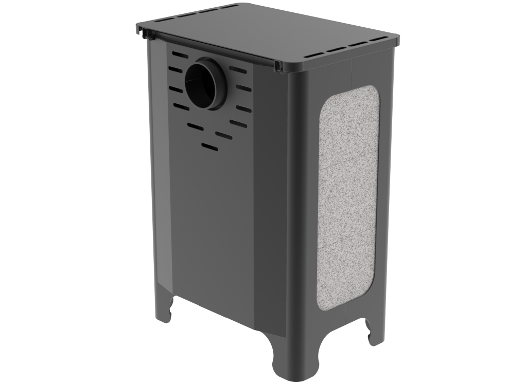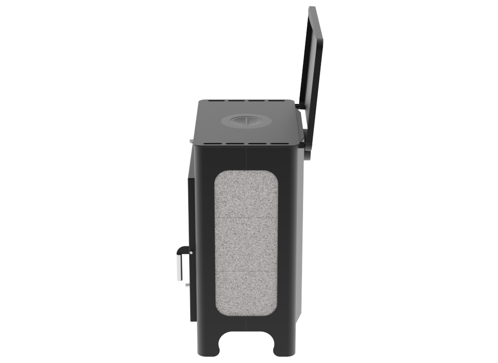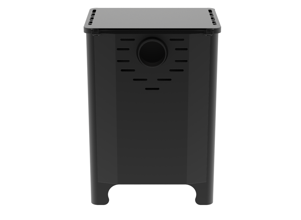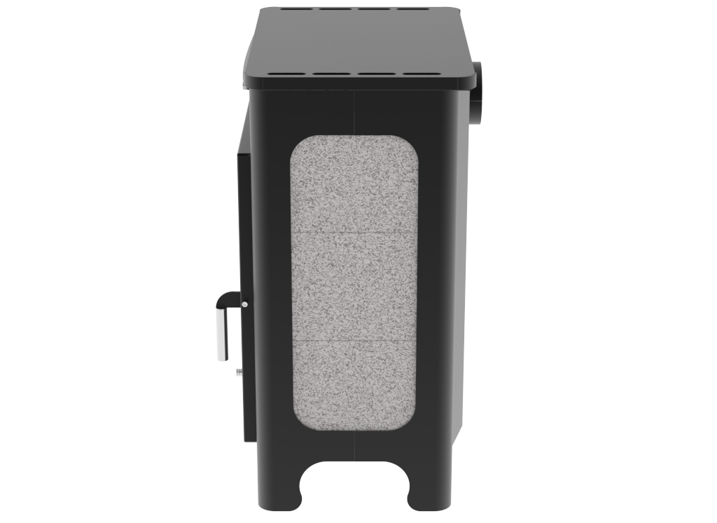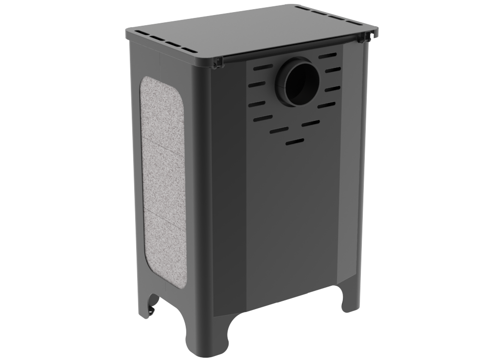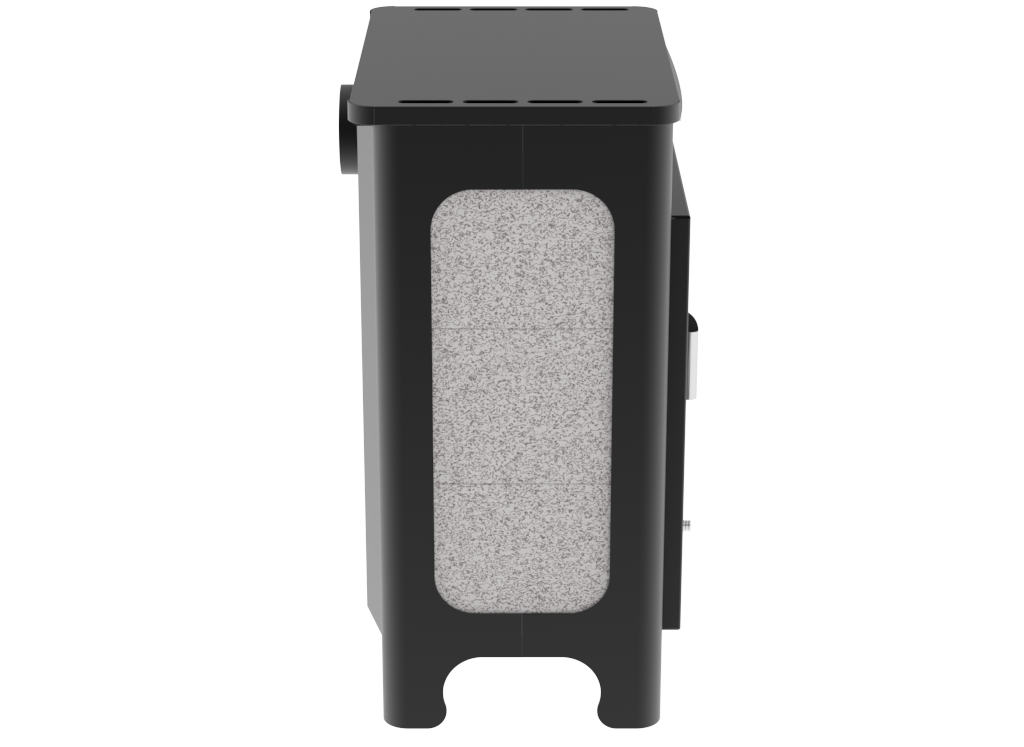 Топка и внешний кожух изготовлены из конструкционной стали толщиной 3 мм, верхняя плита и каминный "зуб" - из стали толщиной 6 мм. Наружные поверхности печи окрашены антикоррозионной термостойкой краской, выдерживающей воздействие высокой температуры - до +900 °С.