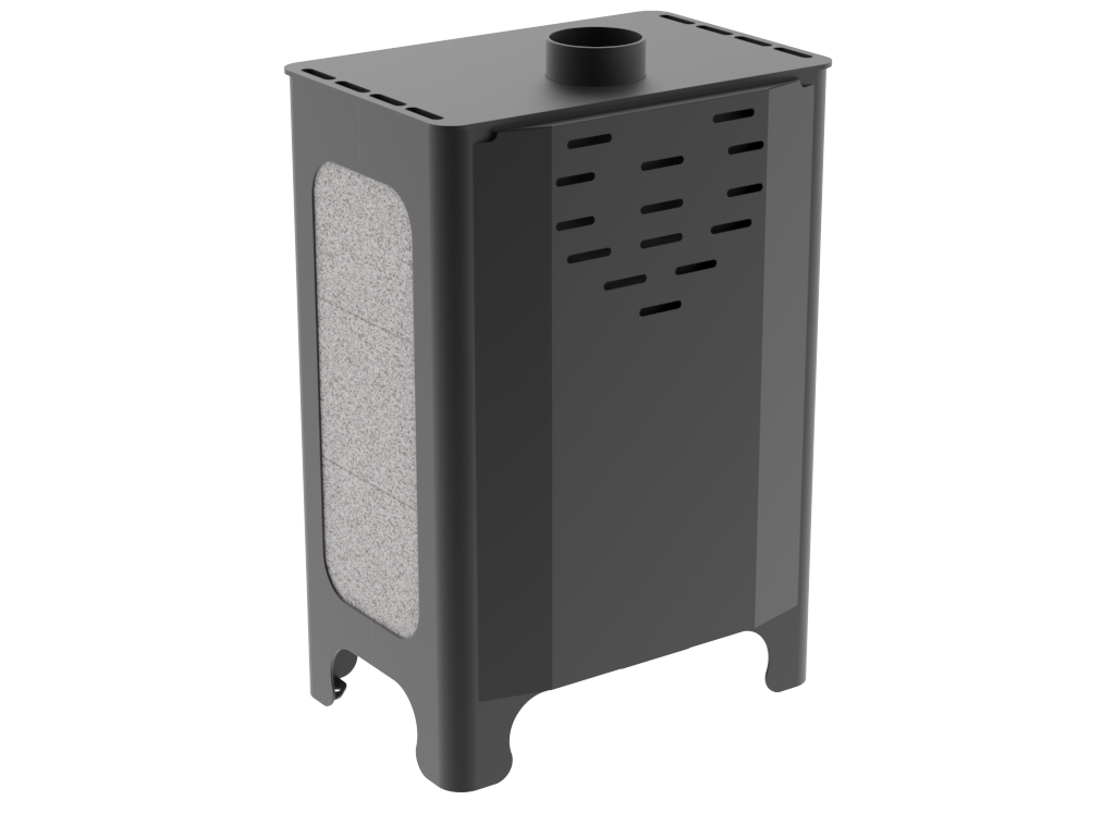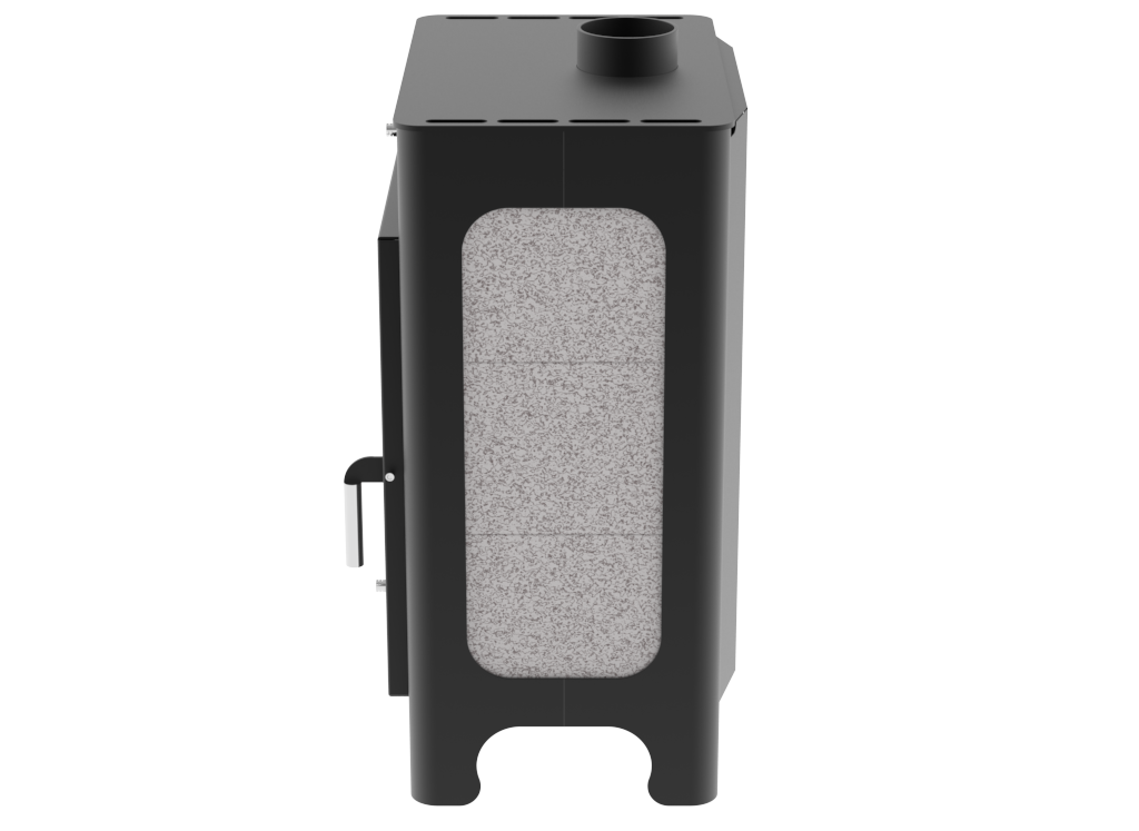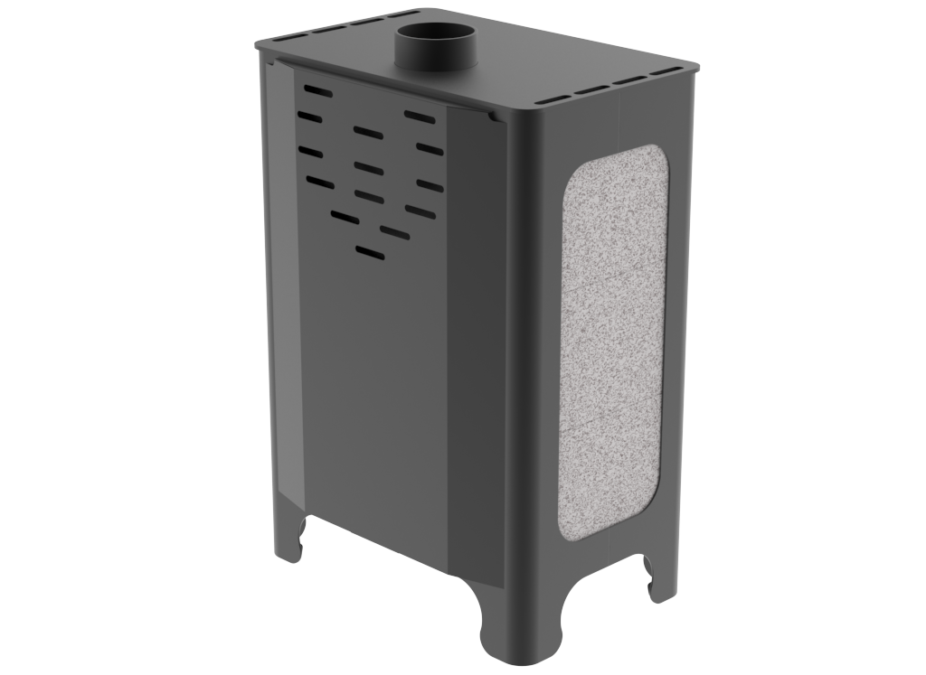 Топка и внешний кожух изготовлены из конструкционной стали толщиной 3 мм, верхняя плита и каминный "зуб" - из стали толщиной 6 мм. Наружные поверхности печи окрашены антикоррозионной термостойкой краской, выдерживающей воздействие высокой температуры - до +900 °С.