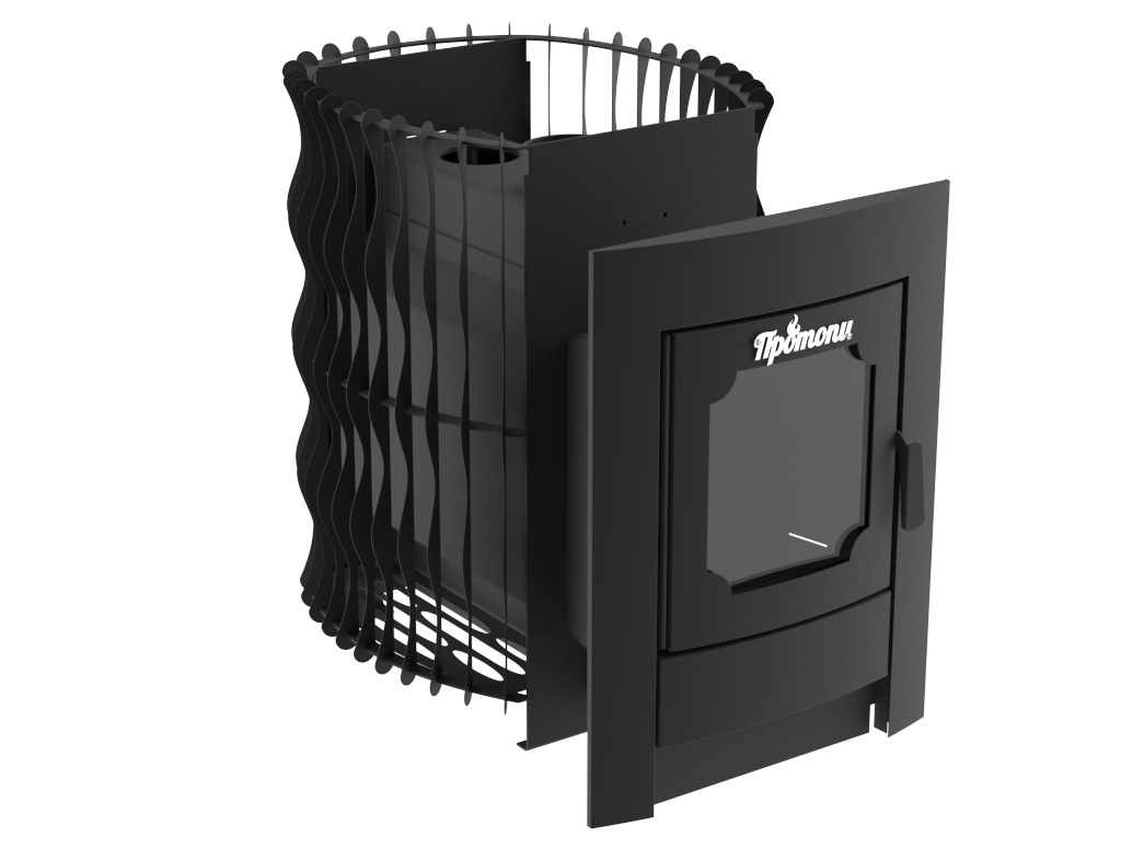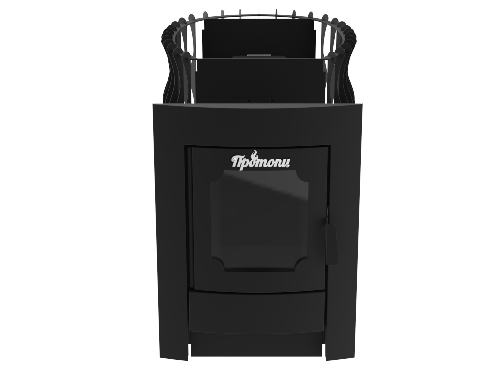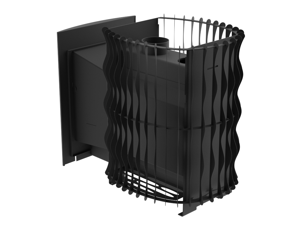 Подкова 14С – дровяная печь окраски "антрацит" для установки в русской бане объемом до 14 м3. Модель отличается интересным дизайном - она снабжена волнообразной решеткой с верхним сечением в форме подковы. Эта печь, с удлиненным топливным каналом, устанавливается в парной, а портал для закладки дров находится в соседнем помещении (в предбаннике или комнате отдыха). Достоинство печи в том, что большое количество камней (100-120 кг) контактирует со стенками топки, поэтому нагревается гораздо быстрее, чем в конвекционной печи. Нагретые камни долго поддерживают комфортную для парения температуру и образуют легкий пар. Дверка со стеклом позволяет наблюдать за горением и своевременно заполнять топку дровами.
