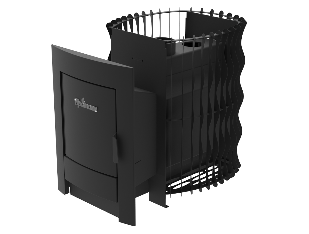 Подкова 18 – дровяная печь окраски "антрацит" для установки в русской бане объемом до 18 м3. Модель снабжена волнообразной решеткой с верхним сечением в форме подковы, что позволяет ускорить прогревание камней. Эта печь, с удлиненным топливным каналом, устанавливается в парной, а портал для закладки дров находится в соседнем помещении (в предбаннике или комнате отдыха). Достоинство печи в том, что большое количество камней (120-150 кг) контактирует со стенками топки, поэтому нагревается гораздо быстрее, чем в конвекционной печи. Нагретые камни долго поддерживают комфортную для парения температуру и образуют легкий пар.