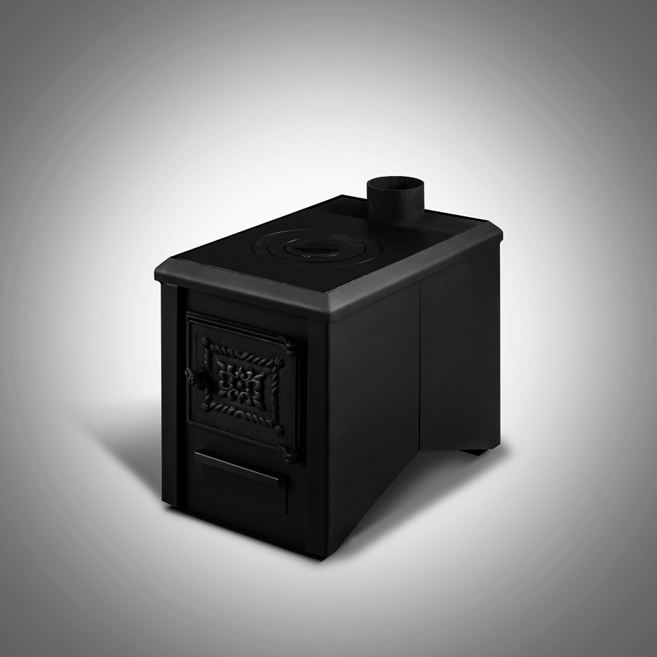 Универсальная и компактная печь может использоваться в качестве обогрева небольших помещений, нагрева воды, приготовления пищи. Сверху печи расположена съемная чугунная одноконфорочная плита. Подбором колец конфорки можно добиться ускоренного нагрева воды и приготовления пищи. На открытом воздухе, сняв плиту, печь можно использовать в качестве мангала. Под дверкой топки расположен зольный ящик, выполняющий две функции: удаление золы и регулирование подачи воздуха (поддувало). Печь заключена в защитный кожух, повышающий пожаробезопасность и снижающий риск ожогов.