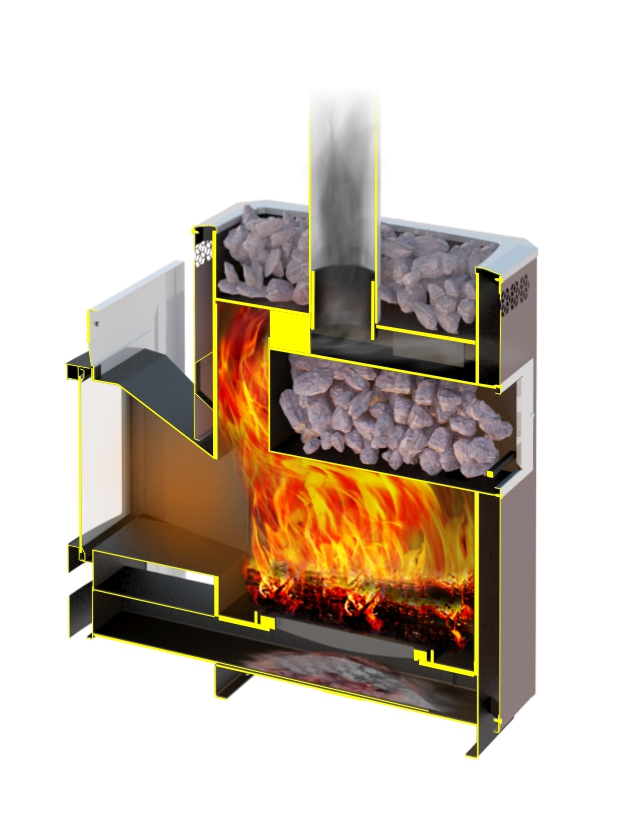 Банная печь позволяет нагревать большое количество камней до высокой температуры. Это применяется для разогрева парной в бане или сауне.