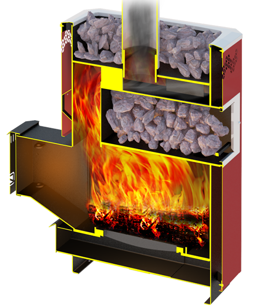 Банная печь позволяет нагревать большое количество камней до высокой температуры. Это применяется для разогрева парной в бане или сауне.