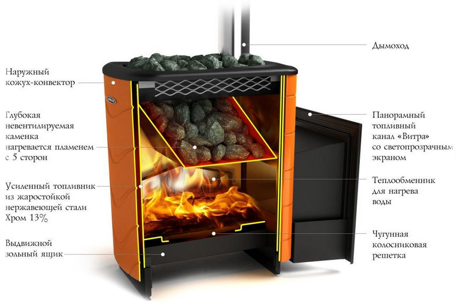 Банная печь позволяет нагревать большое количество камней до высокой температуры. Это применяется для разогрева парной в бане или сауне.