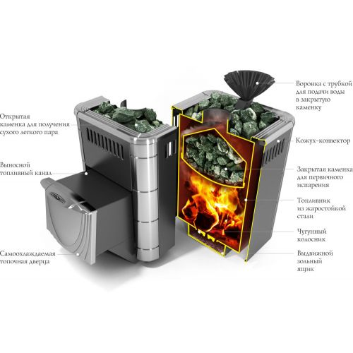 Банная печь позволяет нагревать большое количество камней до высокой температуры. Это применяется для разогрева парной в бане или сауне.