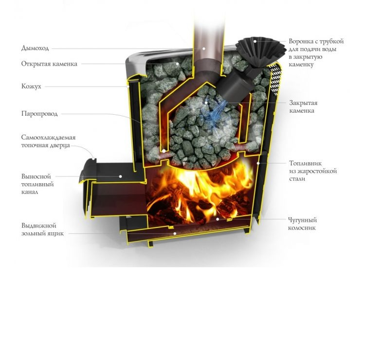 Банная печь позволяет нагревать большое количество камней до высокой температуры. Это применяется для разогрева парной в бане или сауне.