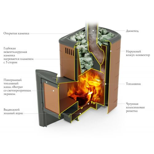 Банная печь позволяет нагревать большое количество камней до высокой температуры. Это применяется для разогрева парной в бане или сауне.