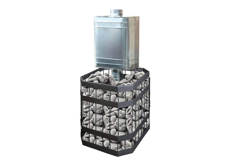 Камень снимает жесткое инфракрасное излучение исходящее от раскаленных стенок топки преобразуя его в мягкое тепловое излучение, при этом не пересушивая воздух в парной. Печь состоит из внешней сетки-кожуха, топки из жаропрочной стали, зольного ящика, дверки и отсека для закладки камней.
