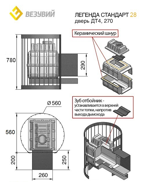 Описание печи Везувий Легенда Стандарт 28, (ДТ-4)